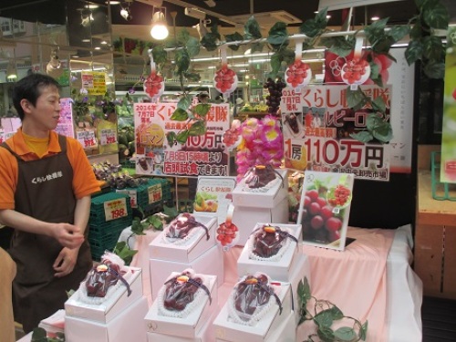 昨日は通院日。というわけで、阪神尼崎の商店街をぶらぶらと歩いていたのですがなんと~!5月に夕張メロン2個を300万円で落札したスーパー「くらし快援隊」が次は!金沢の葡萄を1房110万円で落札してた!落札したのは7日。そして私が通りがかった日、8日は試食会。なんと!お客さんにタダで振舞うんですって!太っ腹!!!お店の前は、試食を待つ人&テレビ局で・・・ごった返していましたよー!私は・・・・山盛り7個入って198円の茄子と、1袋100円の赤紫蘇などなど買ってるんるんと帰宅。前回のメロンの時もそうだったけど・・・・この初競り商品お披露目の期間、店内の特売もすっごいんです(≧∀≦*)いつも安いけど、さらに安くなってるんです!