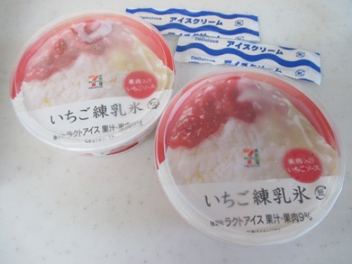 ティラミス氷も、ヨーグルト氷も美味しかったけど、もう販売終了したのかすっかり姿を見なくなりましたねー。そして今は、苺練乳と、抹茶と、あずき。まだ、抹茶とあずきは・・・我が家の最寄コンビニでは一度もお目にかかれてませんが苺練乳!おいしいね!!!!ティラミス氷とかと同じ氷自体に味がついてるん!そして食感!いい!!!!ちなみに・・・セブンイレブンのスイーツは何でも美味しい!と思ってたけどこれは・・・ちょっとだけ期待ハズレでした。わらびもちを想像しながら食べるとなんともガッカリな気分になります(-Д-;)味は美味しいんだけどね・・・うん「わらび」っていう単語に、わらび餅を期待しちゃった私がダメだったのかな???