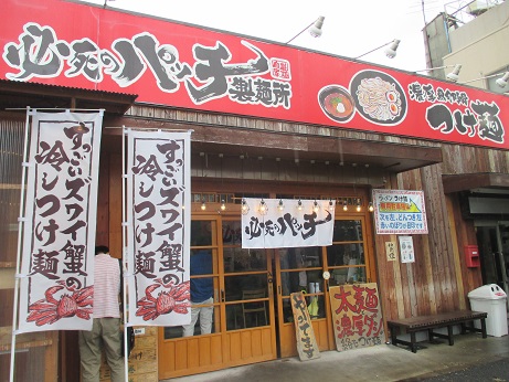よく行く、伊丹の産直・・・ その真ん前にある、すっごい名前のラーメン屋さん。 ずーっと気になってて、ようやく訪問~! 「必死のパッチ製麺所」 http://tabelog.com/hyogo/A2803/A280306/28035199/ 関西人にしかわかんない、すっごい名前(´∀`;)笑 ちなみに、どうやら・・・やっぱり・・・阪神ファンのようです ダンナサマは季節限定@すっごいズワイ蟹の冷やしつけ麺 私は定番@濃厚魚介とんこつつけ麺 つけ汁の中には、角切りの炙り叉焼がごろんごろん♪ 〆は、残ったつけ汁の中に 梅干しごはんを入れて混ぜ混ぜ(*´ω`*)おいしー! 魚介豚骨のつけ麺・・といえば、 私たちの中では、つけ汁に柚子が入った京都城陽の「たけ井」が最高なんだけど こっちの梅干し・・・もイイね~☆ 私たちは2組待ちくらいで入れたけど 食べ終わってお店を出る頃には、ずら~~~~と大行列に(゜Д゜*) それでも家からそんなに遠くないし・・・・また来たい♪必死のパッチ [ 桂雀々 ]