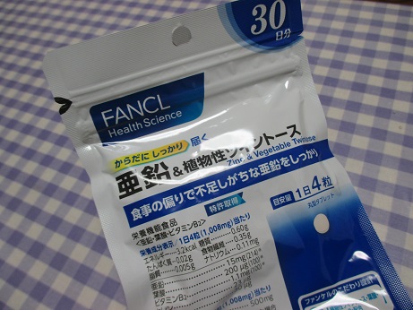若い頃は、けっこう美容系サプリを飲んでたりもしたけど最近はすっかり遠のいてました。しかし!アラフォー・・・いろいろ気になるんです。そんな中、特に私が「これだ!」と思ったのが亜鉛!!!!亜鉛って男性向けっていうイメージだったんだけど意外と?アラフォー女性向け!!!http://亜鉛サプリ・効果.com/aensupli_2.html★女性ホルモンの分泌を増やす★胎児の成長★抗酸化作用(アンチエイジング)★酵素の活性化★美肌効果&美白効果★免疫力の向上★美髪効果&抜毛防止ね!?アラフォー女子には欲しいものばっかりでしょ!?いろんなメーカーのものを調べてたらファンケルのものが、お手頃価格で、しかも葉酸とビタミンB2も入ってる!というわけで決定!!!3パックセットで買うとちょっとお得で、新規で会員カード作って(300円OFF)・・・で、2000円でした!つまり!3カ月で2000円!秋~春は、耳鼻喉の病気になることが多いのでまずは!免疫力UP!を期待したいです♪あとは・・・ホルモンバランスと・・・・欲を言えば、美容系も♪って、2000円で欲張りすぎかしら????≪ポイント15倍≫ファンケル 亜鉛&植物性ツイントース 約90日分 120粒×3袋 【1点のみ定形外可】ファンケルFANCL亜鉛&植物性ツイントース 約90日分 120粒×3袋(徳用3袋セット)【P19Jul15】【SM】
