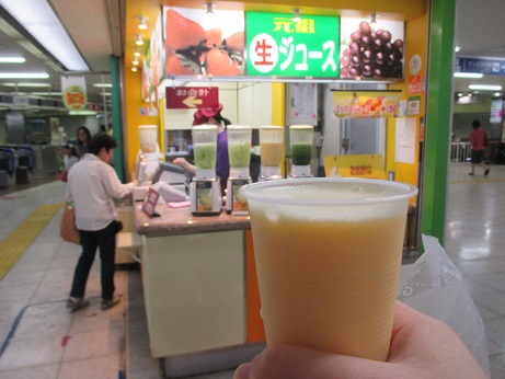 先月に続いて・・・今週末もダンナサマとumieに行ってきました。前回は夕方に行ったけど、今回はまだ陽があかるい午後。ぅん・・・失敗でした(笑)家族連れですーっごい大混雑!お目当てのお店も、行列がすごくて並ぶ気になれず地下のフレッシュフルーツジュース屋さんで一息ついて(といってもお店の椅子は満席だったので、少し離れた、休憩スペースで飲むという)たかみメロンジュース(340円が、50円匹で290円)これ、美味しかった~!人ごみにすっかり酔ってしまってしんどかったので、冷たくて甘いもの!救われた!次回からは、やっぱり陽が暮れてから行こう!!!!夕方5時以降だと駐車場も無料だしね(゜ω゜*)