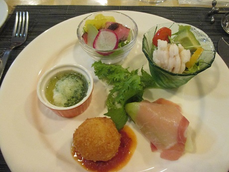 両親&ダンナサマと淡路島に。夜ごはんは、洲本市街にある家族みんなお気に入りのビストロ「しぶれっと」へ。メインが選べるコース料理をいただきました。◇前菜盛り合わせ淡路牛のローストビーフ、鱧、生ハムメロンクリームコロッケ、ホタテ◇カボチャのポタージュ私のメインは淡路島ポークのカツレツダンナサマは鯛!デザートは盛り合わせで。チョコスフレ、イチジクタルト、和梨の赤ワイン煮、レモンとハーブのジュレ。はあ~!どれもこれも美味しかった~!淡路島食材を8割以上つかうことに拘ってるので旅行で訪れるのもオススメです♪