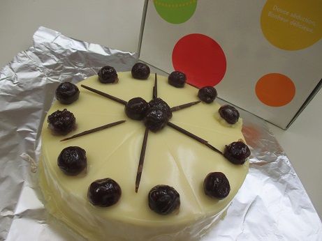 月1のお菓子教室・・・今月からさらに難易度が上がりましたー!「スリーズ・ブラン」グリオットチェリーのジュレ、ココアビスキュイ、チョコムースを ホワイトチョコのムースの中にとじこめ 仕上げにホワイトチョコのグラサージュをたっぷりと♪ そして、グリオットチェリーをたっぷりトッピング♪断面は、こんな感じ・・3時間半かかってようやく完成!!!! 余った材料で試食用のミニサイズも。 んもぉぉぉぉ~!(≧Д≦*)めっちゃ美味しい!!!美味しすぎる!