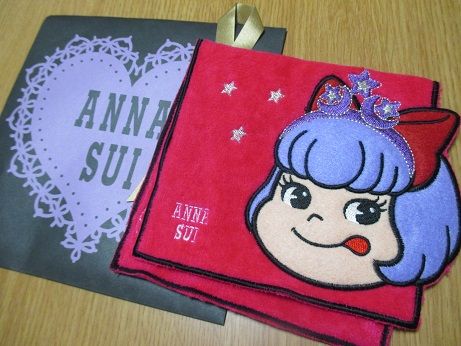 実は私・・・いい歳してペコちゃん好きなんですで・・・伊勢丹で、アナスイとのコラボシリーズを発見し買おうかどうか迷ったけど、その日はとりあえず購入を見送ったんですが後日!!!Σ(゜Д゜;)お友達がプレゼントしてくれましたー!ハンドタオルで、内側にポケットがついてるやつー!それのピンク!まさに私が買おうか迷ってたやつそのもの!!お友達・・・エスパーなの!?びっくりー!!!