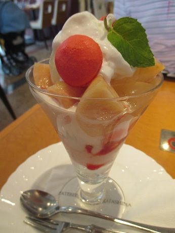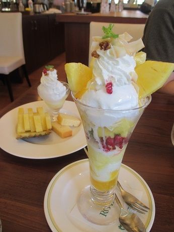 今週末までかな?そろそろ終わっちゃいますがロイホの夏パフェ!パイナップルでした!パイナップルジュレと、ドライココナッツとミントの葉。めっちゃ夏っぽくて美味しい!!!!!ダンナサマが食べてたパインのパウンドケーキとパンナコッタのプレートも美味しかったです~!ほんと、最近のロイホの季節パフェ・・ハズレがないなあ!すごい!