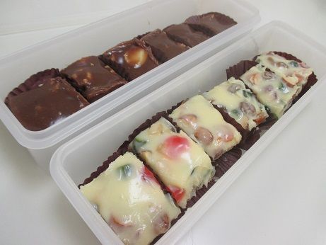 つくったのは2種類! ファッジ・ショコラ ホワイトチョコとミルクチョコの2種類。 ホワイトのほうはドライフルーツ系、ミルクのほうはナッツ系がどっさり! フォンダン・ショコラ アツアツを岩塩を添えていただきまーす(*´∀`*) 口の中で、岩塩がピリッとアクセントになってていい仕事してる! はあ~!楽しかった!!