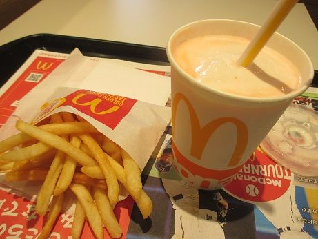 あまりの暑さに、連日つめたいものばっかり食べてます。そんな中、もも・・という文字に惹かれて何年ぶり!?10年以上ぶり?にマックシェイクを!もも×もも!そして、これまた久々なマックポテト。セットを食べるときはいつもナゲットにしちゃうからー。でもシェイクにはポテトが合う!!!!!・・って思ってるのは私だけ??????