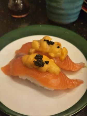 最近は、回転寿司といえばダンナサマが好きな大起水産ばっかりですが久々に!以前よく行っていた長次郎に。ぅわー・・・今回もめちゃ混んでた&待ったわあ。でも!でも!やっぱり長次郎おいしい~!(≧∀≦*)大起水産にはほぼ無い一品ものも充実!!!あれもこれも・・・惹かれちゃーう!私が好きなのは、トマトとたまごとアボカドが入った巻き寿司アボカド巻きなんだけど・・・今回、それ以外に気に行ったのは・・これ!贅沢サーモン♪サーモンの上に、ウニとキャビア!美味しかった~でも・・やっぱりダンナサマは大起水産が好きなようで長次郎に次に来られるのは、いつかなあー??????【クーポン配布中】【送料無料】回転寿司トレイン 回転寿司 スシ 回るおすし おもちゃ プレゼント 景品