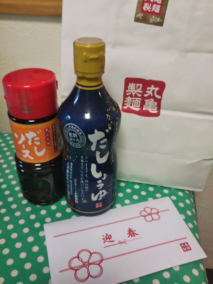 1月5日・・・お昼ごはんも食べて近所を散歩してたら!丸亀製麺で福袋やってる!今日はもううどん食べないけど(笑)福袋が欲しくて、お店の中に!2000円と4000円のがあって、2000円のは、2400円分の食事券、非売品だしソース、非売品だし醤油。4000円のは食事券が倍に増えて、それプラス、非売品の七味唐辛子。うん、迷わずに2000円のほうをGET!だって・・・だしソースが欲しいだけだから(笑)食事券は200円券が12枚。私はそんなに丸亀いかないから(←じゃあ、なぜ買った!笑)食事券はダンナサマにあげました。職場の近くにあって、めっちゃすごい頻度で行ってるのよねー。だしソース♪嬉しいな~!(*´ω`*)これ、大好きなの♪