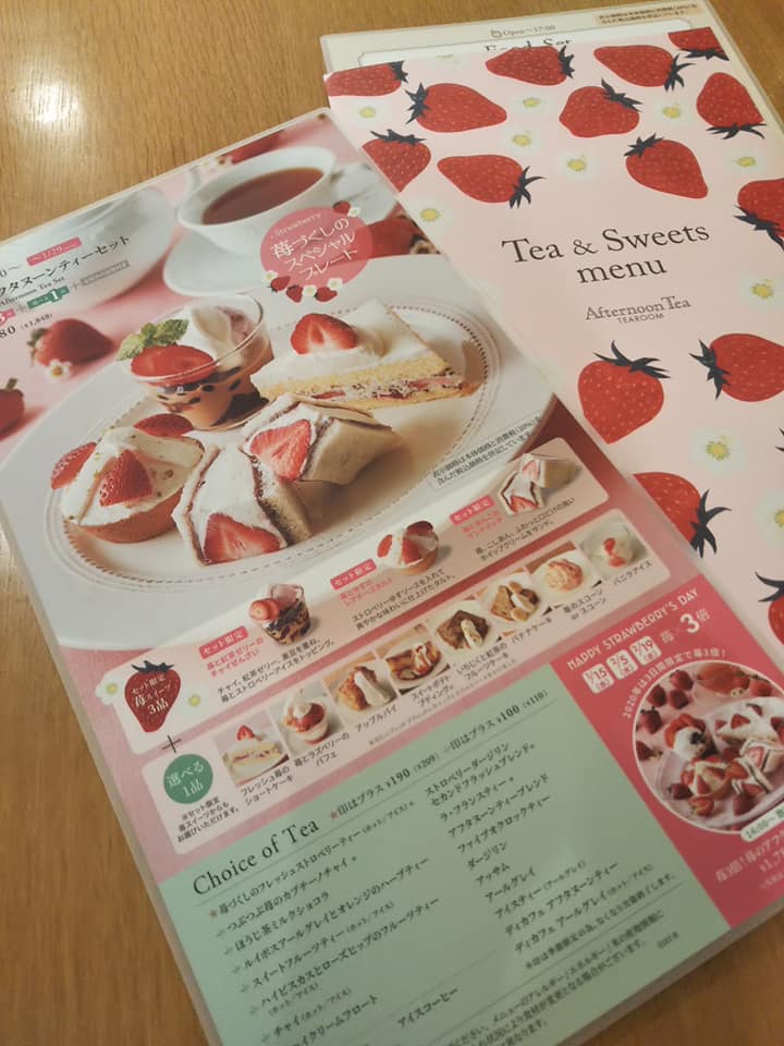 いよいよ、苺の季節が来たー!!近所にあるアフタヌーンティーティールームでも苺づくしのアフタヌーンティーセット@第一弾が始まりました!というわけで初日の販売開始2時にGO!(笑)メニューから可愛い!!!!そして注文したのは~今月29日までの苺のアフタヌーンティ第一弾!選べる1品は、フレッシュ苺のショートケーキにしました。生クリームに、薄いチョコが入っててザクザク食感がクセになる美味しさ!このセット限定の3品は苺と紅茶ゼリーのチャイぜんざい苺とゆずのレアチーズタルト苺とあんこのサンドイッチ黒豆とか柚子とか、こしあんとか1月らしい和食材と、苺・・・これが意外と合うのねー。美味しかった!!第2弾は、苺3倍DAYに行こうかな・・・えへへへへ。