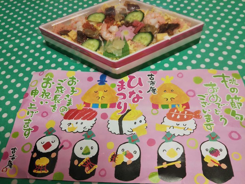 行事食大好き~!ですが今年のひな祭りは・・・バレンタイン催事ロスなのかコロナの影響で楽しみにしてたイベントが中止になりさらにお菓子教室まで休講になったからなのかテンションあがらずでも行事食は食べたい!・・と古市庵のちらし寿司を買ってしまいました(´∀`*)ところで最近のひな祭りって和菓子じゃなくてケーキなのね。びっくりしちゃったー!!!って、私は和菓子もケーキも作ってませんが(笑)もうちょっと温かくなったらお料理作りたいテンションになってくるかなー?どうかなー?