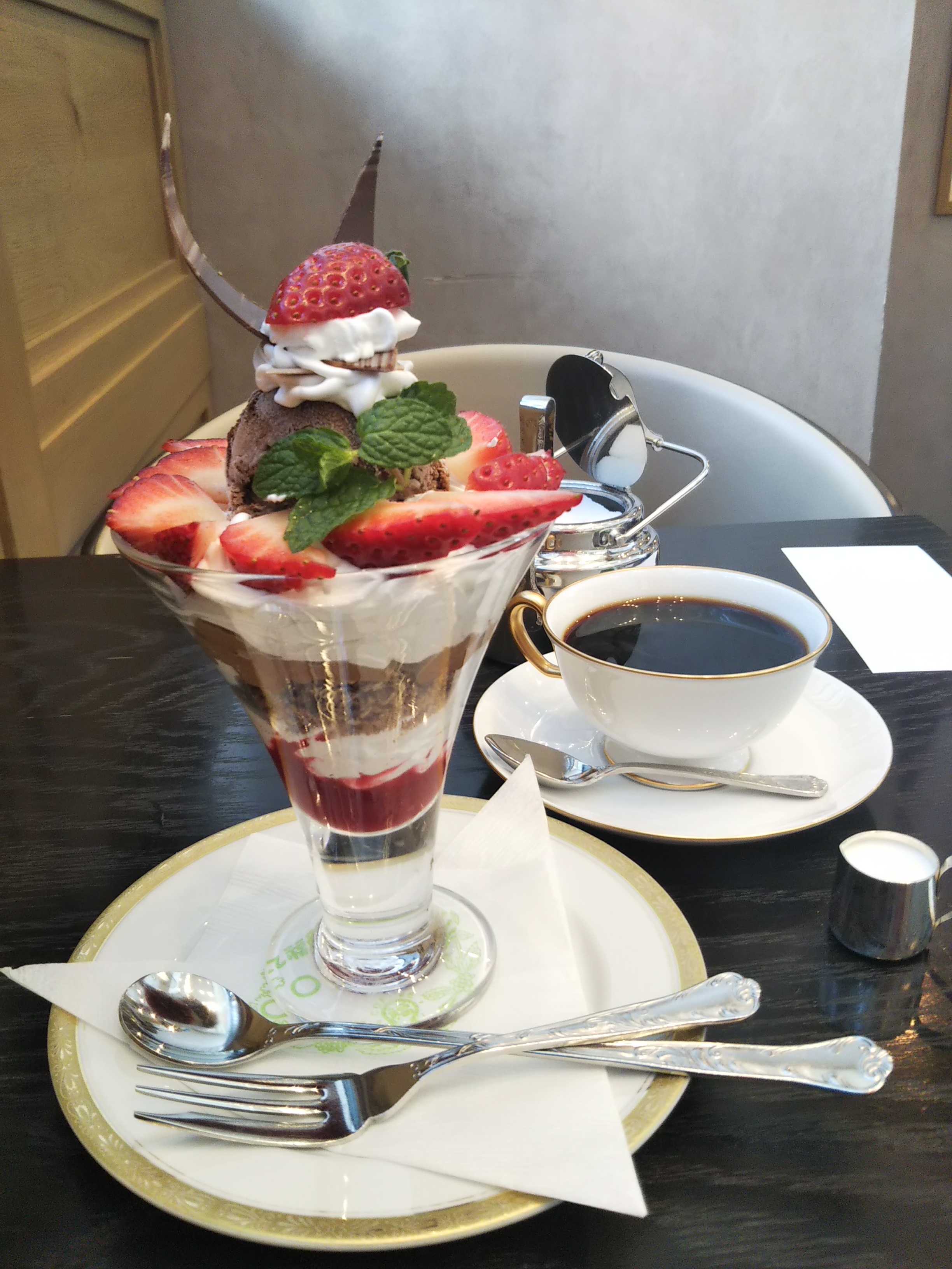感染防止のため会場イートインが中止でも各階カフェでいちごスイーツとみかんスイーツやってるんです♪初日はアルロイックのアイスを食べたけど3回目の参戦だったこの日は、ちょっとゆっくりしたくて同じく祝祭広場の横にある「丸福珈琲店」に平日、しかもオミクロン急増中ってことも重なってか店内はほぼほぼおひとり様!母娘かな?っていう2人組はいるけど、友達同士っぽい人が居ない!ゆー---ったりとっても静かな店内で、まったりティータイム。奈良の古都華いちごをつかった「フレーズショコラパフェ」たっぷり苺、生クリーム、チョコアイスチョコムース、チョコフレーク、苺ソース。いろんな食感が楽しめて最後の最後まで美味しい!そして、丸福珈琲の濃いめのコーヒーにとってもよく合う(*´▽`*)席を減らしたり、テーブルの配置を工夫したり・・・やっぱり阪急百貨店は安心して楽しめるなあ♪本当にありがたいね(*´▽`*)公式 丸福珈琲店ドリップコーヒー&焼きモンブラン&珈琲ケーキセットドリップコーヒー ドリップ珈琲 ドリップ コーヒー 珈琲 モンブラン ケーキ スイーツ ギフト プレゼント コーヒーギフト公式 丸福珈琲店リラックマ×丸福珈琲店限定 コラボマグカップギフトレギュラーコーヒーかわいいギフトセットコーヒー 珈琲 珈琲豆 リラックマ コップ マグカップ コラボ ギフト プレゼント コーヒーギフト