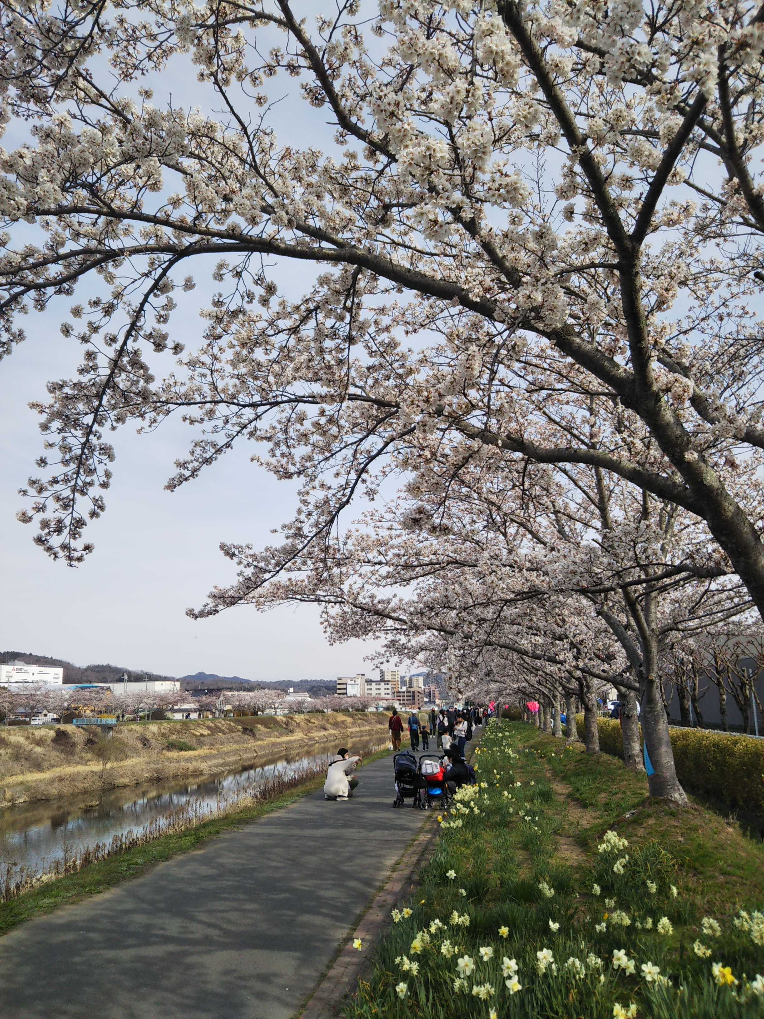 土曜日、たまたま・・・三田にある産直に行っててあれ!?道路を挟んで向かい側三田市総合文化センターあたりが賑やかだなあ、と思ったらさんだ桜まつりやってました(*´艸`*)川沿いにずーっと桜並木が拡がっててそんなに人も多くないし、なんかのんびりしてるー♪桜の足元には、地元の人たちが植えた水仙んで・・・やっぱり、食いしん坊な私は花より団子!キッチンカーがたくさん出ててその中に、学生さんたちが出してるお店があってそこで、たまごせんべい食べました♪学生さんたち、みんな楽しそうだったなあ。出来立てあつあつ200円♪ちなみに、この桜まつり・・・4月2日だけのイベントだったぽくてたまたま行けて、ラッキーでした♪