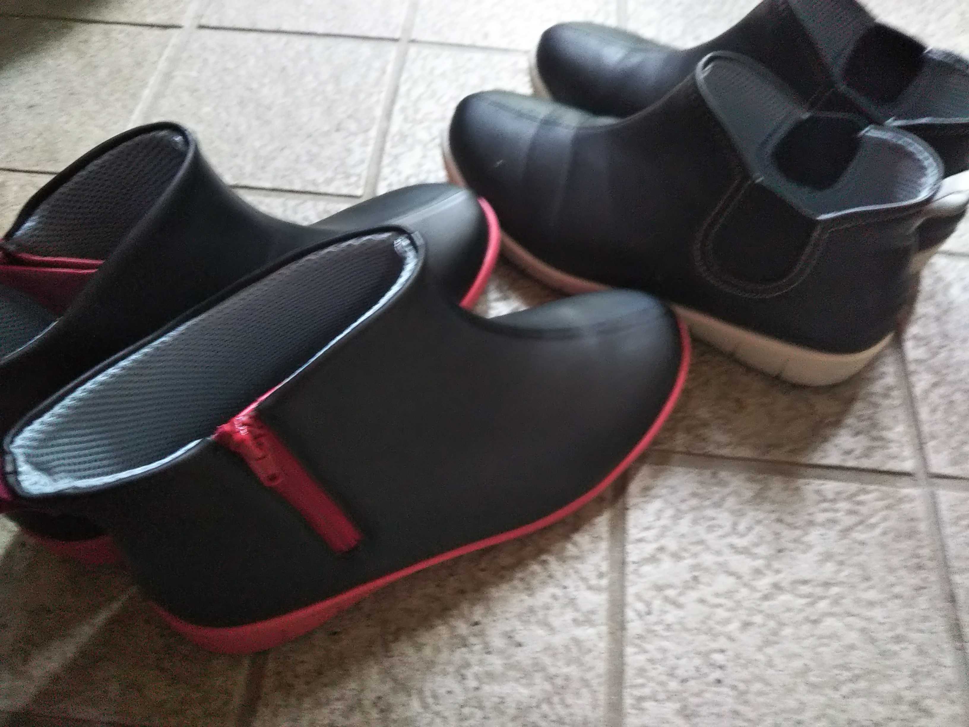 専業主婦を辞めて5年。専業主婦時代には要らなかったもの・・・それはレインブーツ。だって大雨の日は外出しないし(笑)どうしても外出、っていうなら車だし。でも、バイトを始めたらそんなわけにもいかず出勤の時に靴下が濡れたら、夕方帰るまでずーっと足元が不快。そして1年くらい経って買ったのが、レインブーツ。よく1年も我慢したな、私(笑)レインブーツを買うっていう発想がそもそもなかったんだよね(;'∀')東京靴流通センターで4000円くらいで買った安物。だけど、底にクッションが効いてて軽いし痛くないし、で・・・めちゃ愛用してました。でもね、さすがに・・・たまにしか履かない靴。といっても4年も経つと劣化するわけで・・・買い換えました。また・・・同じシリーズで(*´艸`*)以前のはサイドゴアだったけど今回のはジップアップタイプです。色も黒に・・・アクセントカラーはピンクに見えるけど、エンジっぽい赤・・かな?すぐに辞めるだろうと思ってたバイトだけど意外と長く続いてるので、買い替えましたー(笑)バイオフィッター バイパンジー Bio Fitter BFL2749 レディース靴 3E相当 レイン・スノー 防水 雨の日 軽量 軽い 空気循環 蒸れにくい ブラック