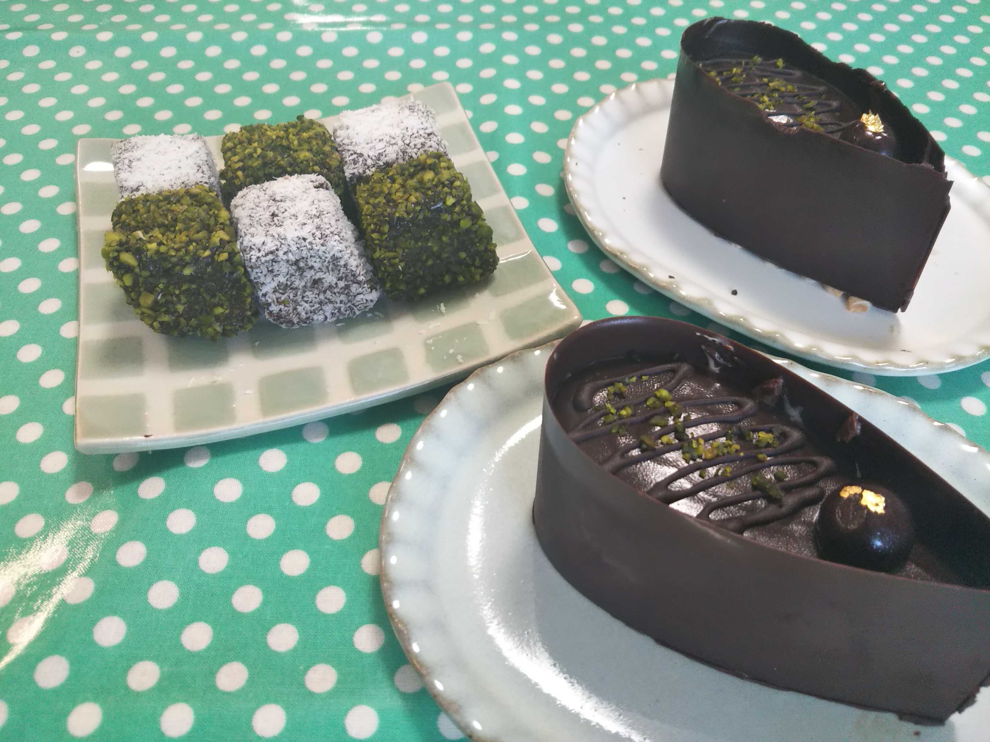先月はみんなの予定が合わず開催できなかったので2か月ぶりのお菓子教室です(*´▽`*)お菓子作り(仕事)で溜めたストレスをお菓子作り(お稽古)で発散する私・・・(笑)”ラルム・ド・ショコラ”と”レミントン”ですフィアンティーヌとホワイトチョコを混ぜたサクサク土台。チョコムースと、グリオットチェリー入りのミルクムースその上にグラサージュショコラ何が難しい、って・・・しずく型のチョコ枠です。薄くて繊細で・・・(;´・ω・)もう1品は、ジェノワーズ生地を3cm角に切ってチョコに浸して、ココナッツやピスタチオをまぶしただけの簡単おやつ。オーストラリアの伝統菓子なんだって♪はあ~!楽しかった!!!!!!!