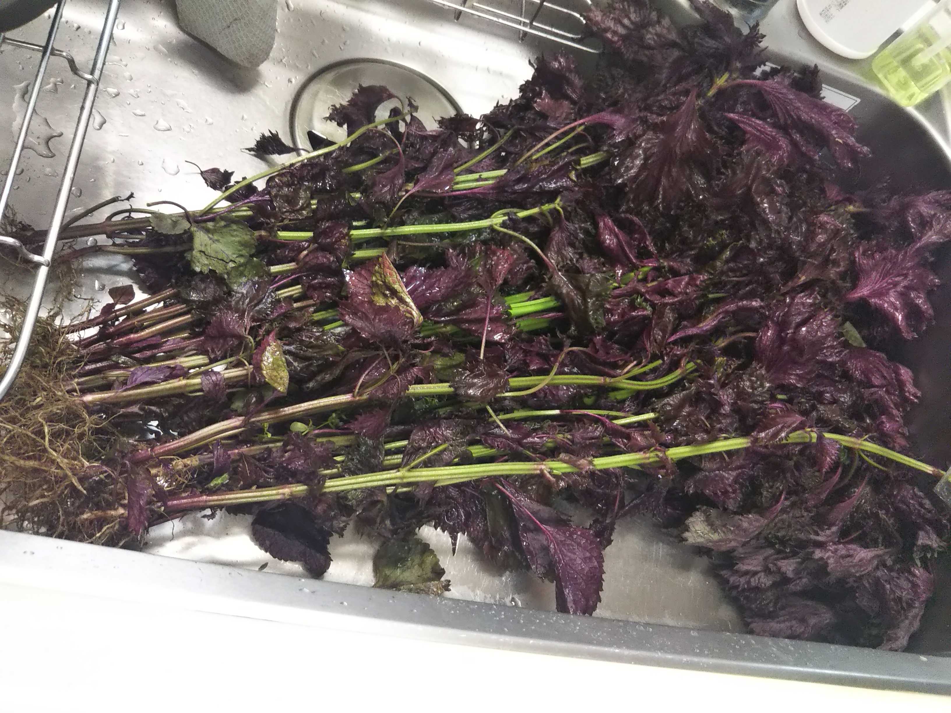 和歌山に行ったときシーズン的には梅なんだけど去年、梅シロップ作ったけどなかなか減らなくて飽きてきたのかなあ????だから今年は一旦つくるのお休み。でも、根付きで花束みたいに大きな赤紫蘇が売っててダンナサマが「つくって~」というので(笑)和歌山に行った翌日、せっせと作りました。大きな花束サイズで350円!!!枝から葉をはずして何度も洗って泥を落とします。これが・・・何度洗っても泥が出てきて悪戦苦闘!でも800g以上もありましたー!すごいお得!いつも作る時の2倍くらいの量だけど水と砂糖の量はいつも通りにしてみました水2500mlで15分煮だして、簡単に葉っぱを取って(多少は残っててもOK)砂糖400gを加えて10分煮詰めて(←いつもより少な目)好みで600gくらいでもOK火を止めたらレモン汁 75cc を加えて、濾して完成。甘さ控えめだけど、いつもの倍量の葉を使ったから香りがしっかりしててうー---------ん!美味しい!泥と格闘した甲斐がありました(*´▽`*)汗をたくさんかいた日は紫蘇ジュースでビタミンとミネラルを摂って熱中症対策!だね~【ふるさと納税】農薬不使用のシソ葉を使用した【シソジュース】1L×2本セット 【果実飲料】【ふるさと納税】濃縮赤しそジュース「ビエンナーレ」2本入り 【果実飲料・ジュース】【送料込み商品】赤しそジュース (希釈タイプ3倍〜4倍)6本入【北海道産】