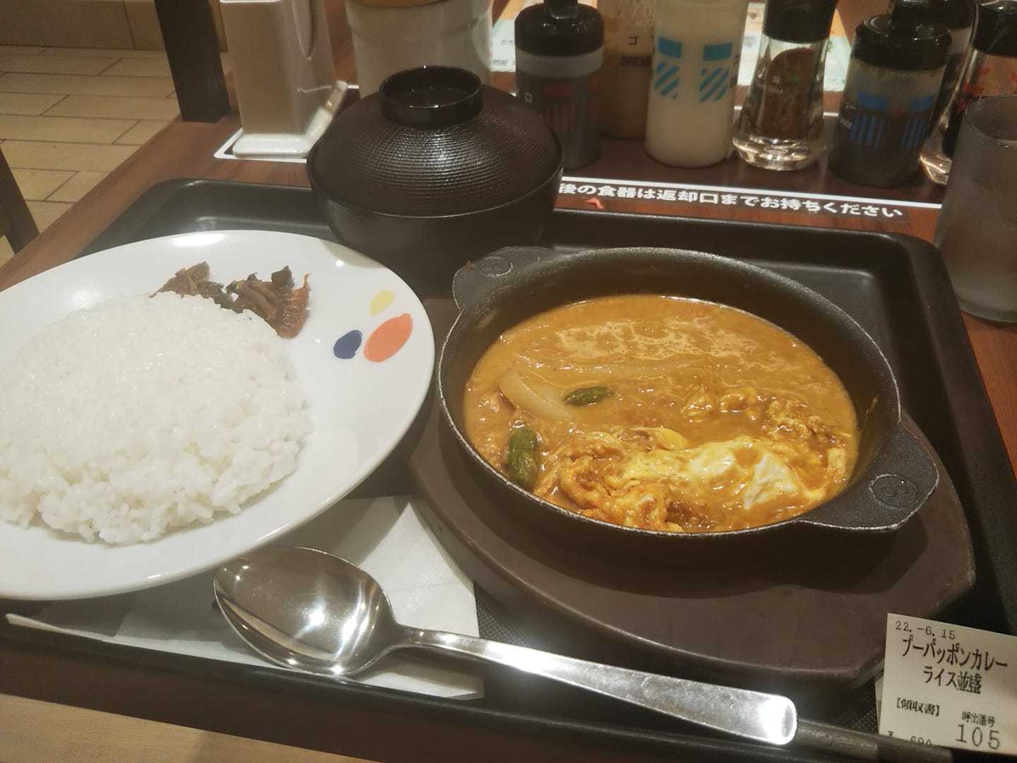 以前、松屋でとっても美味しかったジョージア料理”シュクメルリ”今は・・・タイ料理をやってるらしいよ。と聞いて、さっそく行ってきましたー。タイ料理、私は好きなんだけどダンナサマは苦手だから最近すっかり食べる機会がないのよねえタイ料理といえば辛いイメージだけど今回は”プーパッポンカレー”カニとか海老のダシが効いたココナッツミルクベースの甘いカレーです♪タイ料理でも、もれなく味噌汁付き・・・(笑)具は、ふわふわたまご焼きと、玉ねぎと、アスパラ。カニの身は入ってたんかなあ????でも、めちゃ美味しい(*´艸`*)ほんのーり辛さもあって、いい感じにタイ料理。タイ料理好きな人も、タイ料理を食べ慣れてない人でもきっと美味しいと思える感じで、さすが!松屋!そして何がすごいって、これが690円って!ほんと凄い!( ゚Д゚)!ヤマモリ タイカレープーパッポン 180g