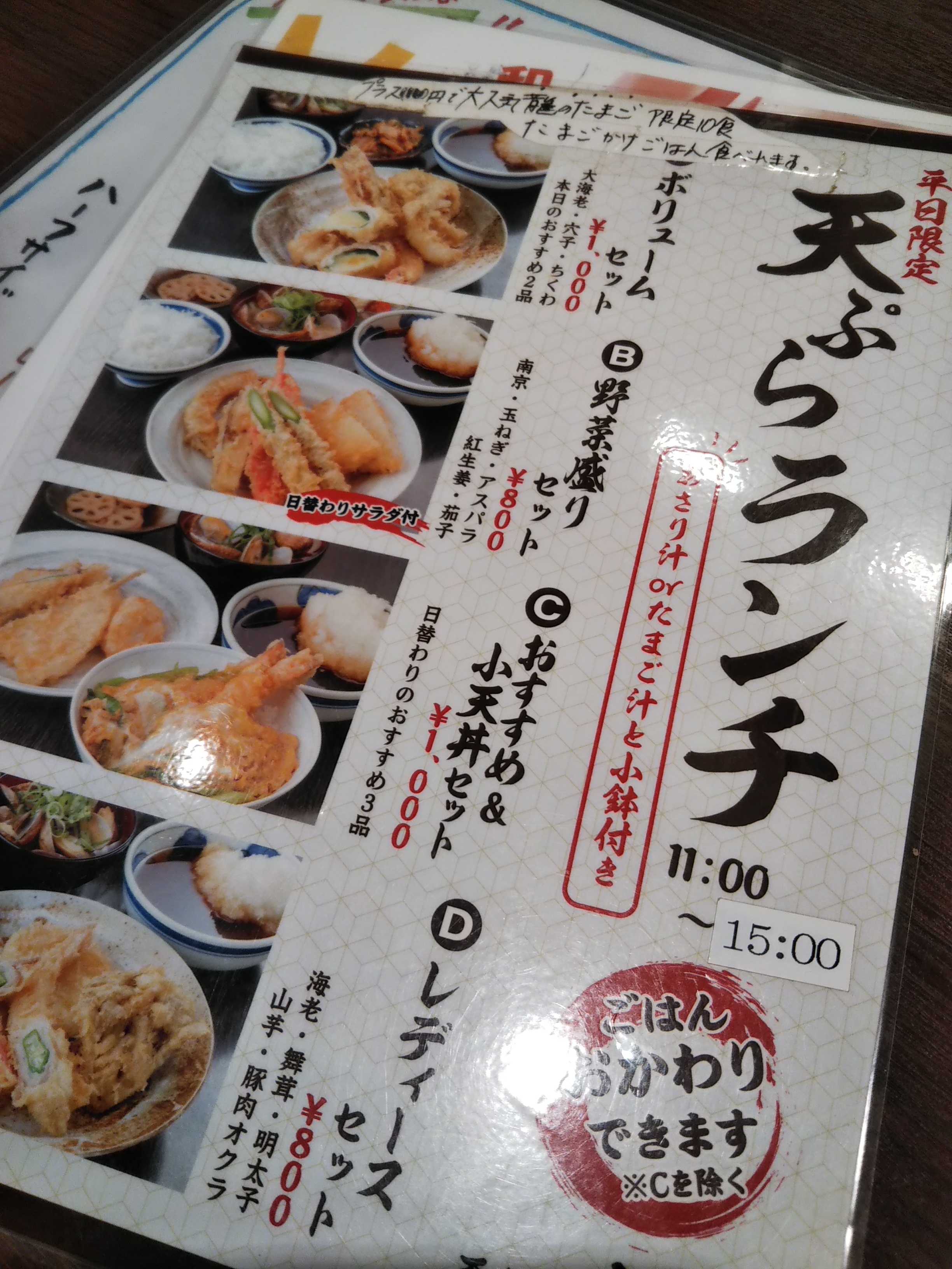 ホワイティ梅田の奥にある、呑兵衛たちのエリア。下戸な私には無縁なエリア・・と思いきやランチタイムなら私でも入りやすそう♪というわけで~かなり以前、難波のお店に行ったことがある堺の大人気天ぷら屋さん「大吉」に♪ホワイティ梅田だからなのか?コロナ禍だからなのか?名物の、床にアサリの殻をポイ捨て・・・はNGだったので店内、歩きやすかったです(笑)穴子大好き!ちくわ大好き!な、私は・・・迷わずボリュームセット!すぐに来たよー!どー-------ん!!!日替わり2種は、鶏むね&出汁巻き玉子の天ぷらでした。味噌汁はもちろん!貝汁で♪うんうん、美味し~い(*´艸`*)近くの席のサラリーマン2人組が「あかーん。めちゃ呑みたくなるやつやあ」って言っててうんうん。私は下戸だけど、気持ちは・・・わかるよ!(笑)大根おろしがたっぷり入った甘めの天つゆも美味しかったなあ。
