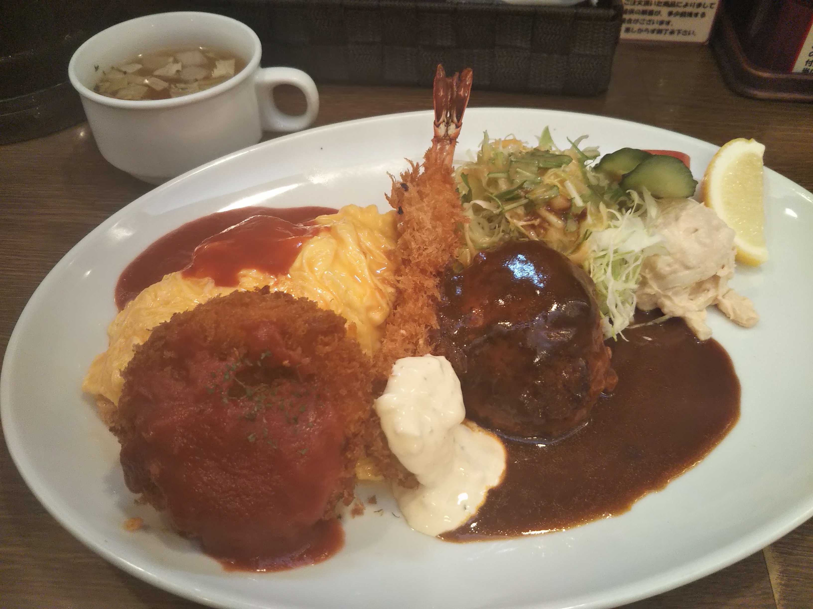 疲れすぎ&おなか空き過ぎ・・・でランチを求めて梅田をうろうろ。あ!「グリル北斗星」に空席を発見!というわけで久々にGO!小さめオムライスとエビフライ、小さめハンバーグがセットになった女性向け?の「バンビセット」というのがあってこれがまあ、私の好きなものしか乗ってない!っていう素敵な1皿なんだけどこの日は・・・とにかくカロリーも気にせずおなかいっぱい食べたくて大好きな”かにクリームコロッケ”を追加トッピングしちゃった(*´艸`*)うふふふどーん!もう・・・夢のような1皿っ!!!!!カウンター席に座って「美味しいなあ」って食べてたら作ってる人と目があってしまいました(笑)恥ずかし~!!!!カロリー気にせず好きなものを好きなだけ食べたらなんだか急に元気になったわ♪って・・・だから痩せないんだろうなあ(笑)【 ANA's Sky Kitchen 】おうちで旅気分!!ANA国際線エコノミークラス機内食 メインディッシュ ハンバーグ フェス 第2弾 12個入り 冷凍食品 お弁当 お取り寄せグルメ 温めるだけ 簡単 時短 洋食 和食 ana アナ機内食 冷凍 冷凍弁当