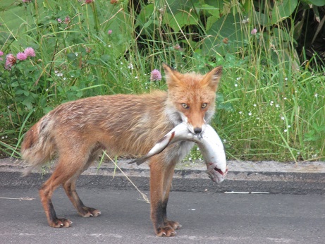 獲物をくわえて御機嫌なキタキツネに遭遇(゜Д゜*)ワイルドぉー!!!!!
