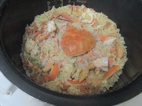 帰宅後、生きたまま捌いて・・・・セコガニごはんに♪