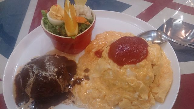 ハンバーグと半熟オムライス