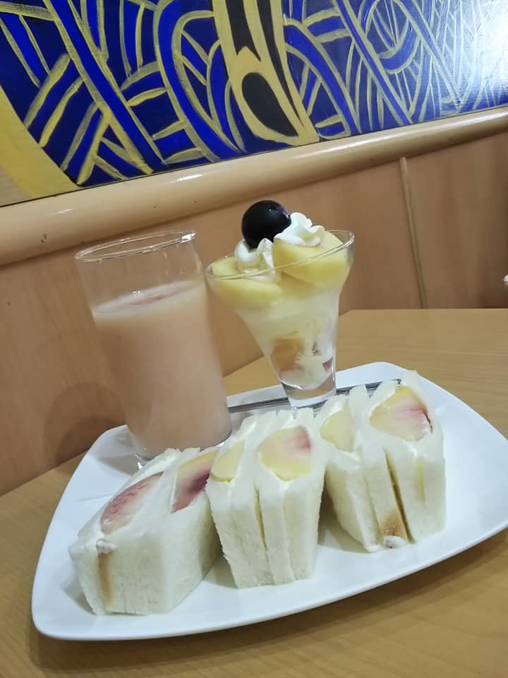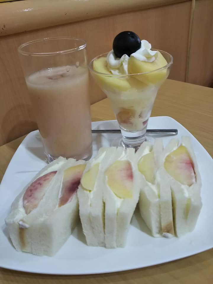 桃ジュース、桃パフェ、桃サンド