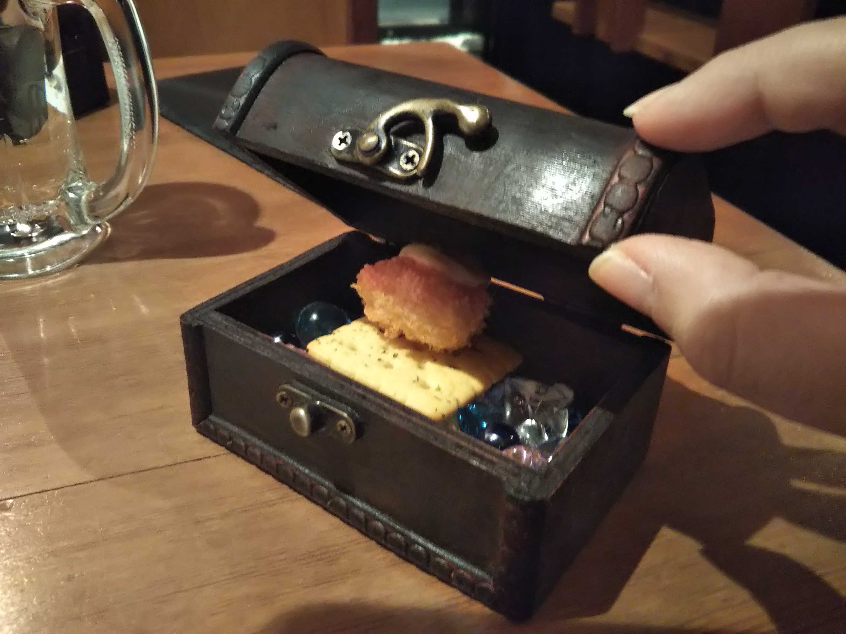 宝箱の蓋をあけると燻製の煙の中からサーモン!