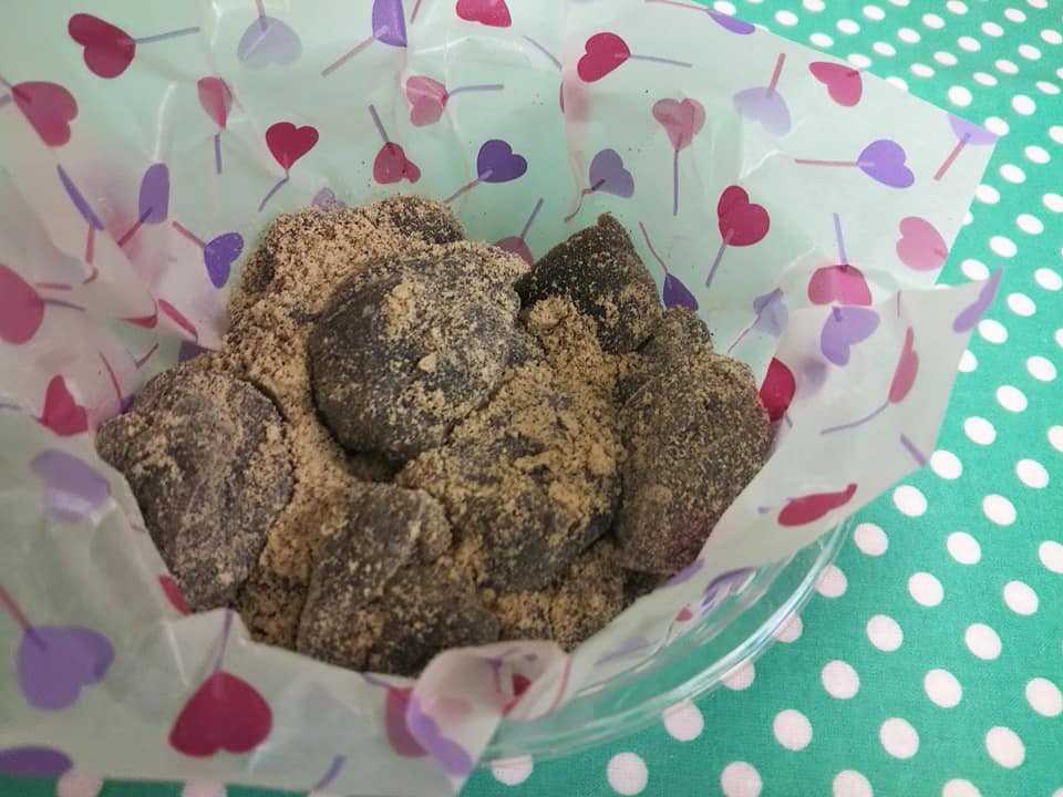 ほんのり黒い本わらび餅粉に砂糖を入れて