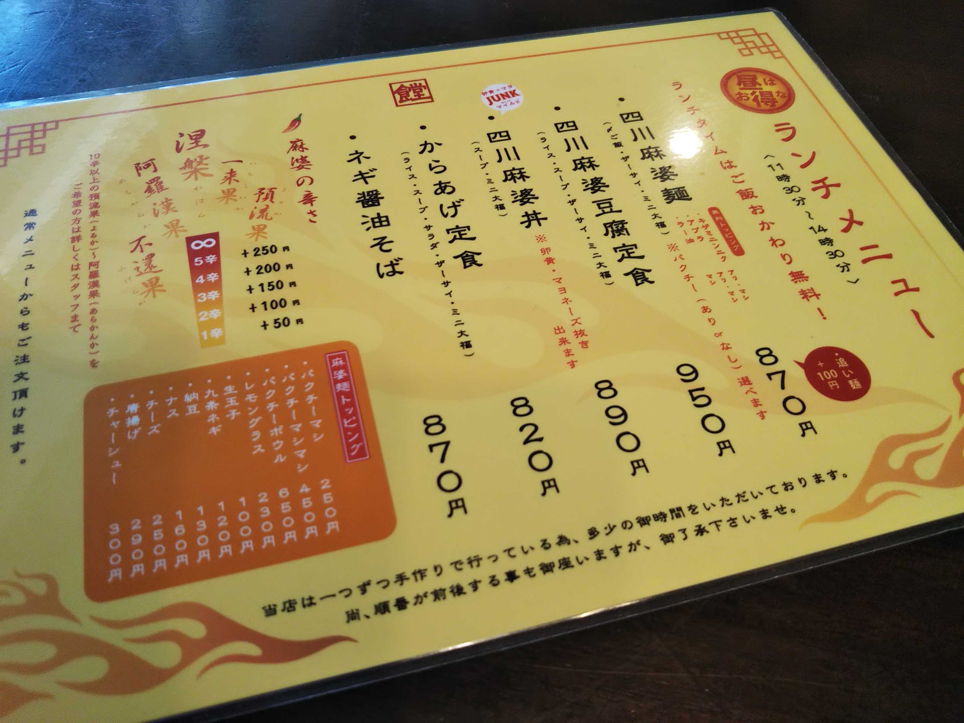 四川麻婆豆腐と麻婆麺の専門店に!