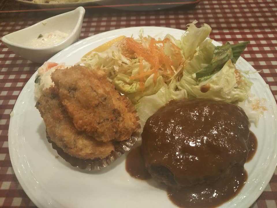 欲張りな私はカキフライ&ハンバーグセットにしました。