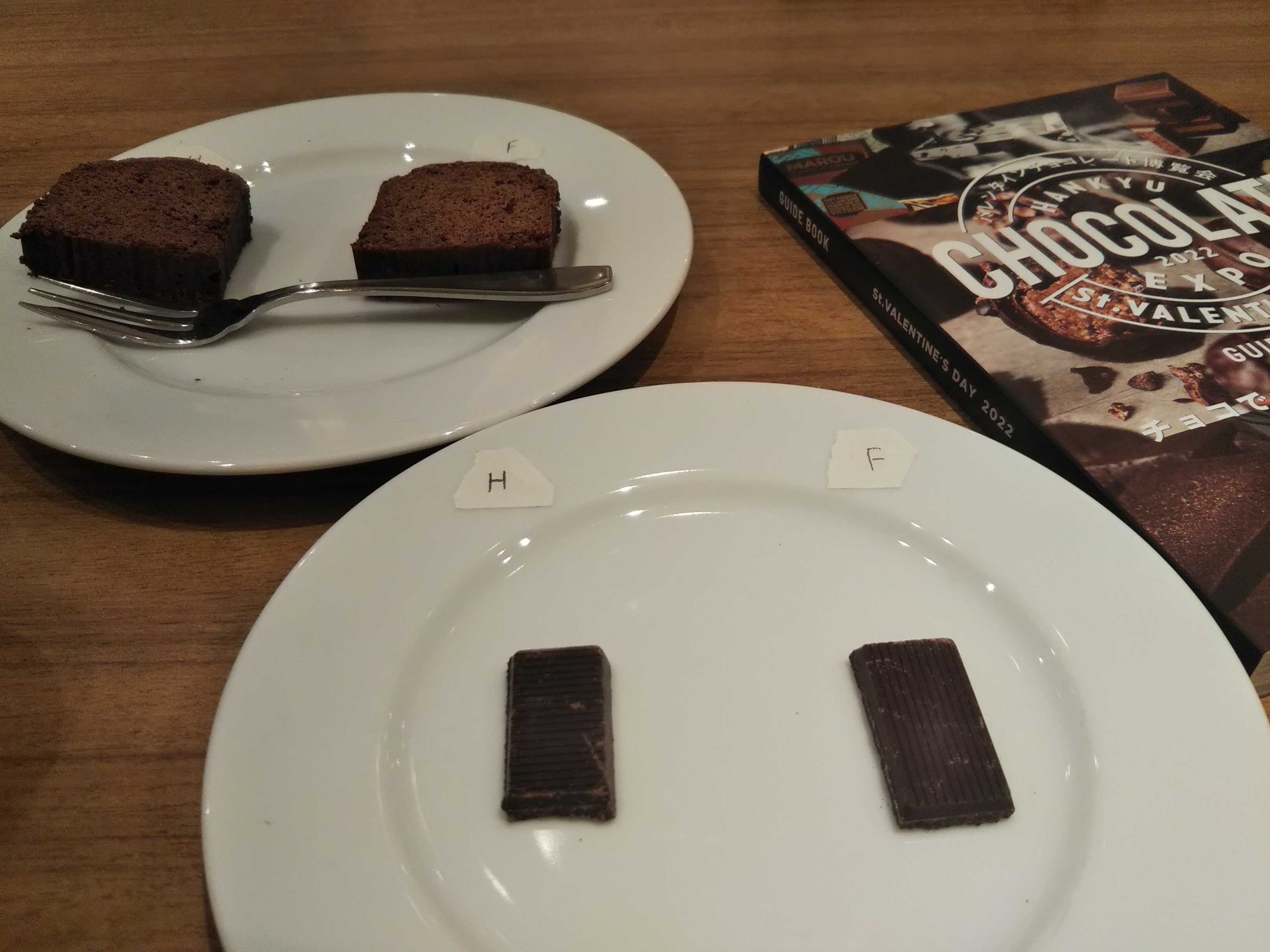 まずはハイカカオと、フルーティ、2種類のチョコを試食します。
