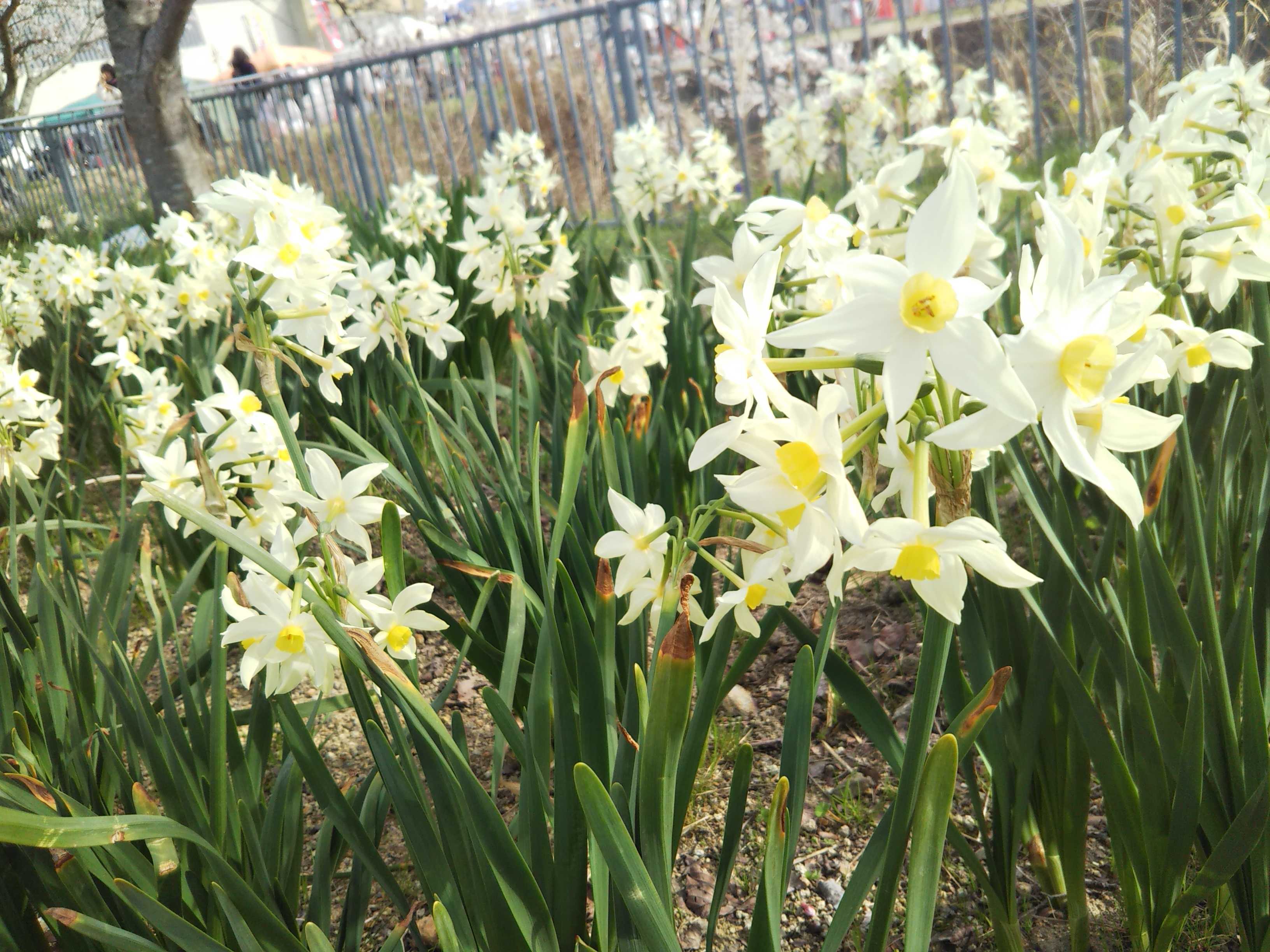 桜の足元には、地元の人たちが植えた水仙