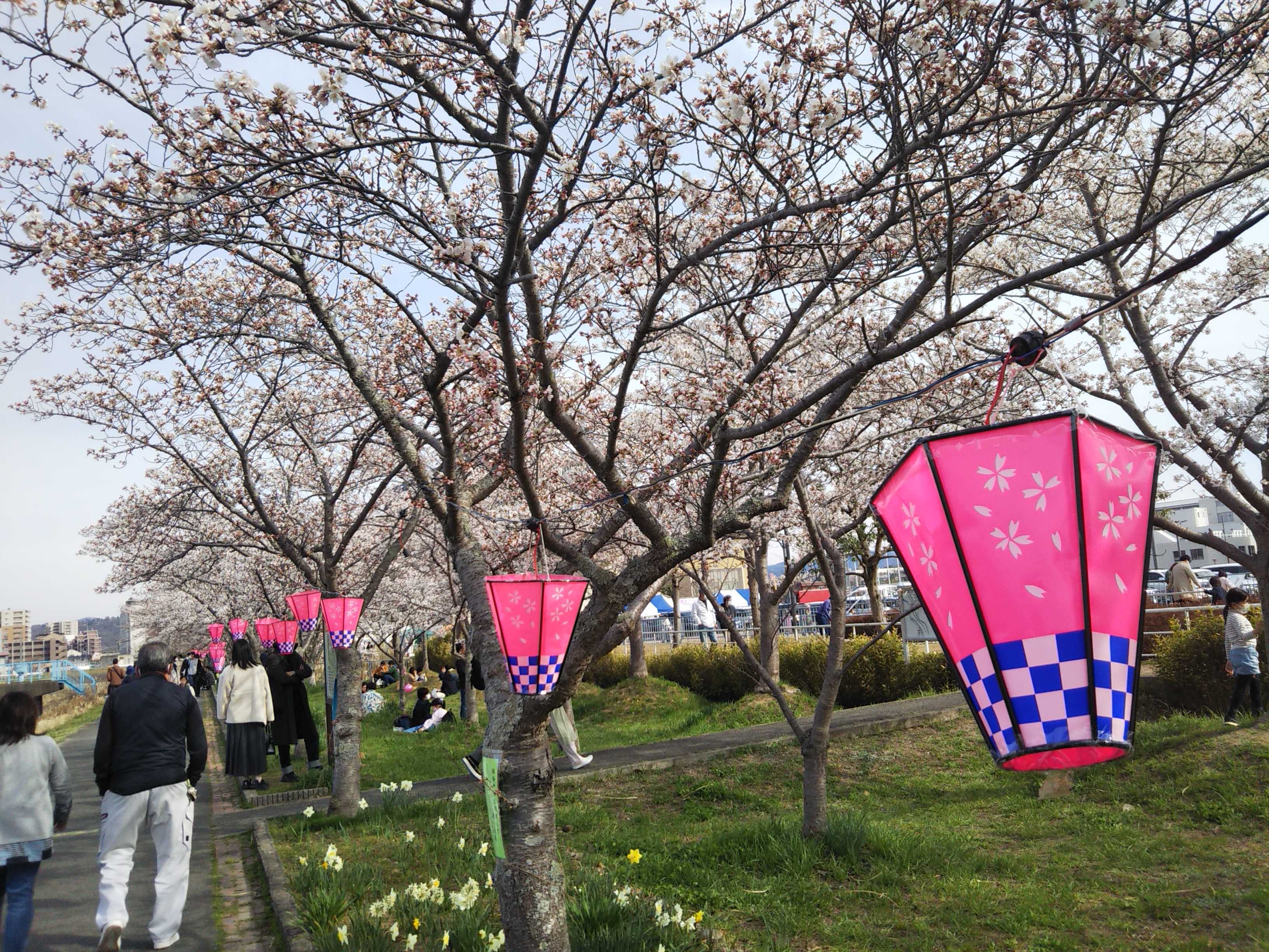 川沿いにずーっと桜並木が拡がってて