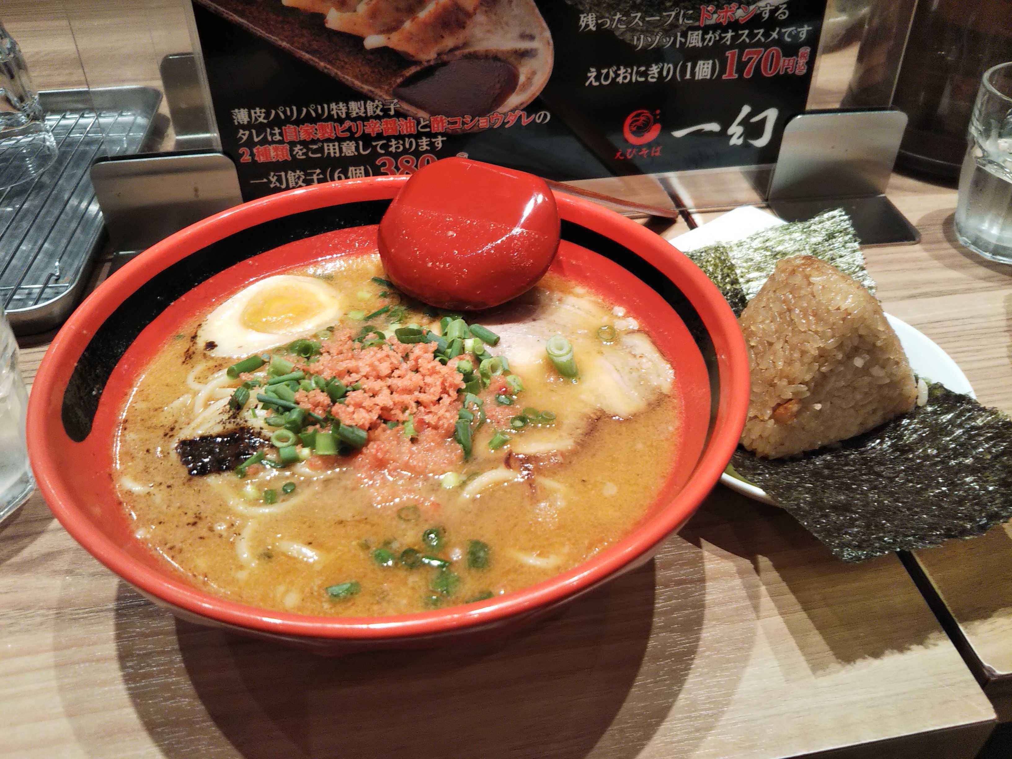 そこにえびおにぎりも付けて、残ったスープにドボン!