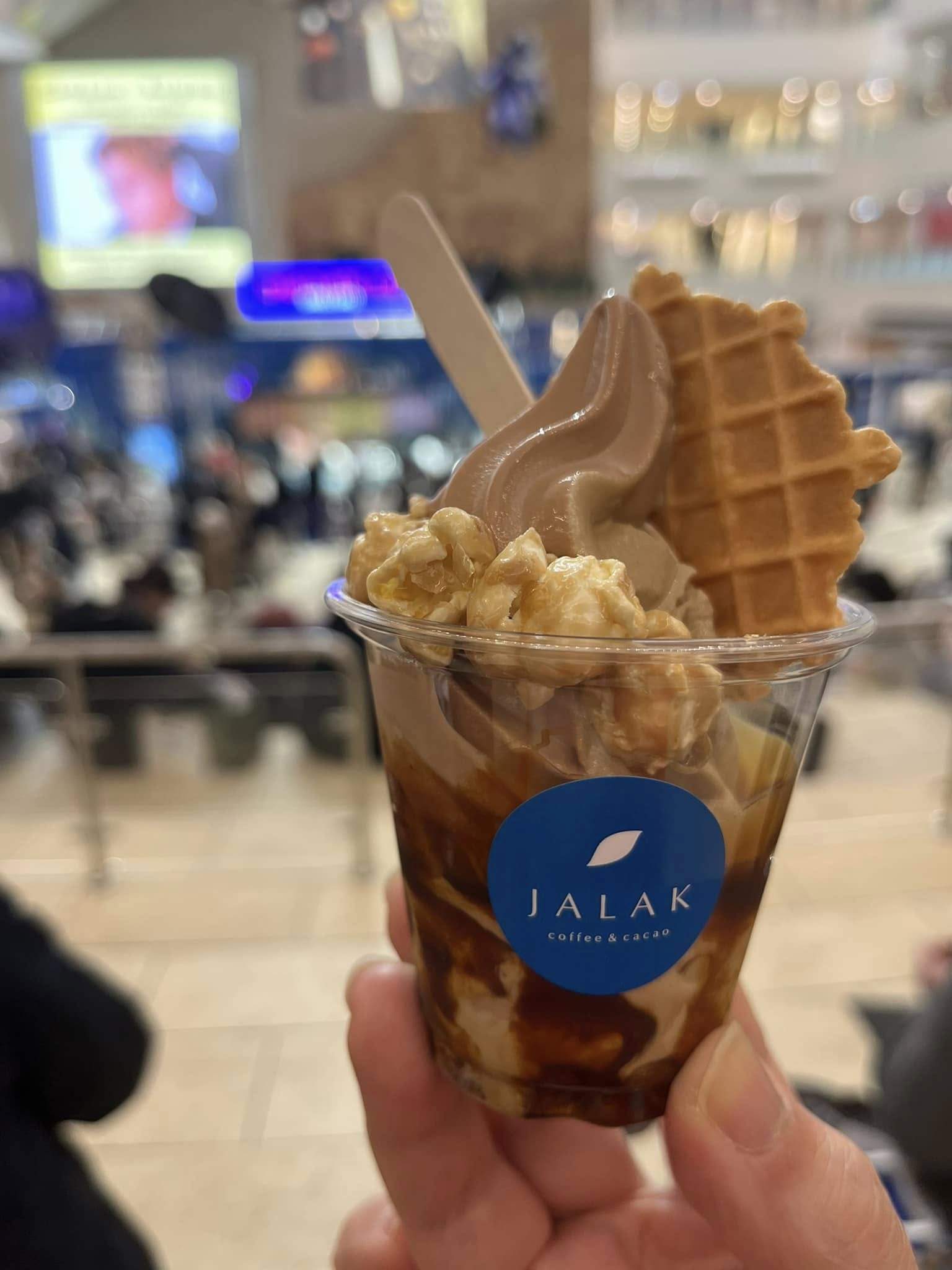 ソフトクリームが、コーヒーか、カカオか、ミックスか。