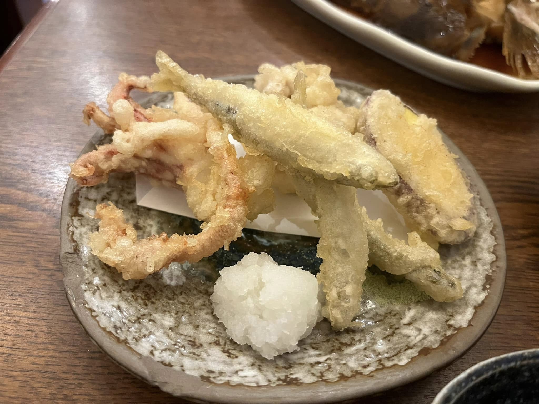 白子、いかゲソ、ワカサギ・・サツマイモ。4種やん!(笑)