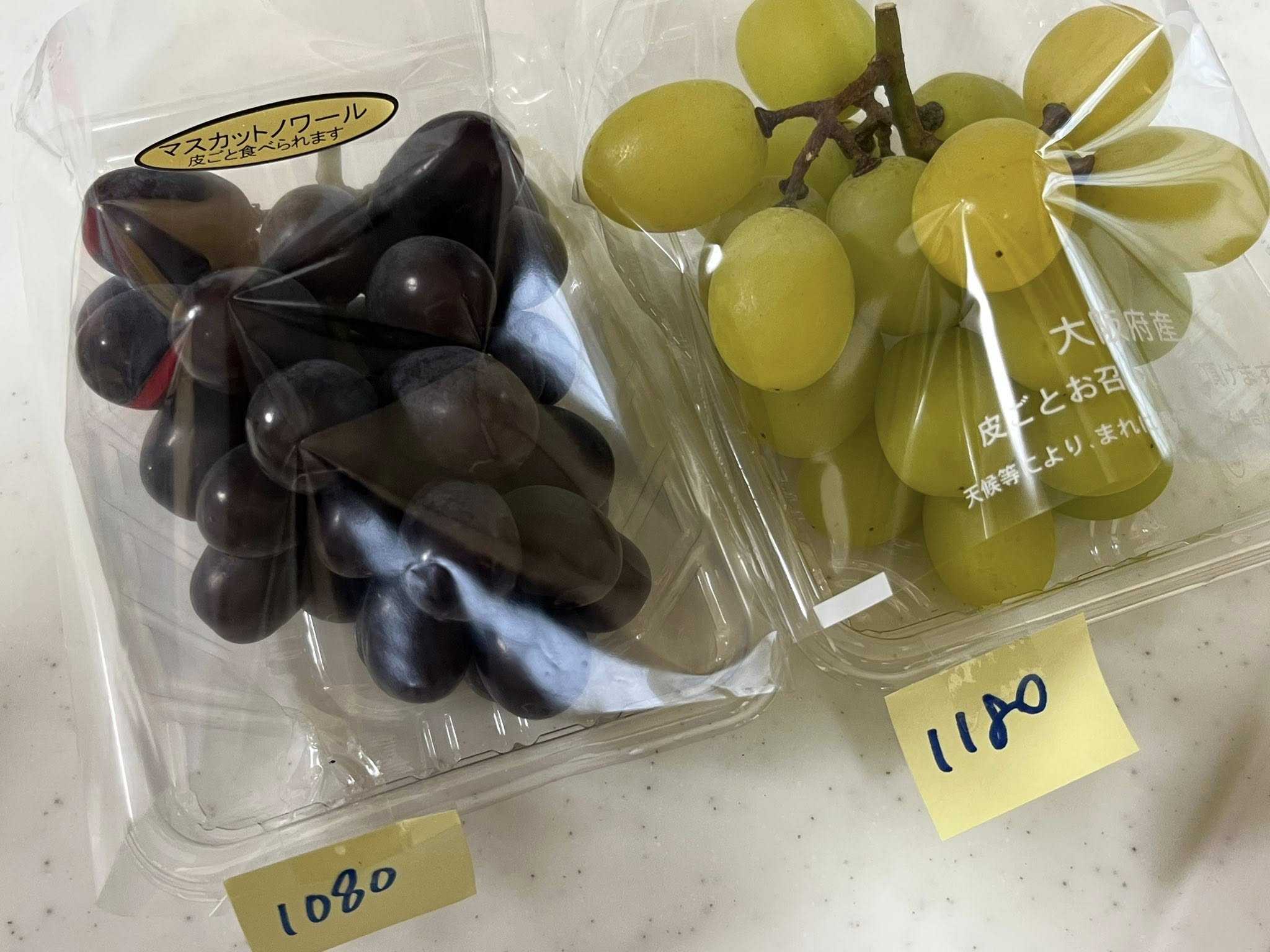 シャインマスカットも、ちょっと黄色がかった熟したものを買ったんだけど