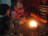 空は昨日のまたまた夕時のもの。この後とてもつよい風がふいた。空が濃く青を残したころ風が電気を消して雨をつれてきた。夏の終わりの匂いがした。雨季だけど、日本の8月な感じ。朝はさらっとしたほんのり冷たい空気。昼間は暑くて、夜に近づくと雨が来る。雨のおかげで埃っぽさがなくなってとても気持ちのいい朝が訪れる。夏の終わり日本にいる時も妙に寂しい感じ。こっちにいてもその感覚は変わんないものだなぁ。 蝋燭の明かり