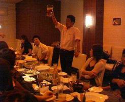 富山道場には白帯が沢山居るので、基本のブロックにもう少し知識を加えた破壊防御の練習を徹底しました。拳先生のムエタイパンツには、「自由格闘」「破壊戦車」「鬼コーチ」等と刺繍してあります。破壊戦車は日本人の空手選手が拳先生につけたあだ名です。ストライキングアンリミテッド鬼コーチを着用出来るのは、今の所拳先生、より姐、ショーン”一徹”様の三名のみ。対ローキック、中段、上段とラウンドを分けて攻守交替制の受け返し。残念な事に、写真を最後に撮ったので後二名の白帯さんたちが写っていません。そのうち一名は、来週水曜日を最後にアイルランドの学校へ戻ります。カナダ人のマークも学校に戻る為に母国へ帰ります。↑写真はマークのお別れ会の会場、侍で腹踏みの訓練をするシャケと拳韓・・・マークはもうこんな写真撮れなくなるなあ、と飲み屋で拳立て練習するタイゾーさんとタケさんを見ながらポツリ。山田指導員、ポスタープリントアウトして、新しい人材を募集しましょうね。顔面のパンチに対する防御を見たい方は、拳先生とボクシング練習&マススパーリングをしたシャケさんのビデオをダビングさせてもらって、研究して下さい。