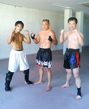 ラスベガスでK-1やUFC出場選手のムエタイトレーナー、パッドホルダーをしている韓拳が来日中です。23日まで錬真会館空手道場で選手向けトレーニングを開催します。錬真会館の指導員、山田のためにスパーリング予定が山田風邪の為、ストライキングアンリミテッドの上級者向け講座に変更。↑写真左から、宮坂さん、拳先生、李選手。李選手と拳先生とより姐は、7年前ほどになるのかな?昔、サンフランシスコの空手道場で一緒に練習していた仲間です。ビデオで一時間ちょっと、ダビングして欲しい方はより姐にVHSテープ渡して下さい。パンチの修正、スパーリングが主体。いつもよりちょっとハイレベルの練習内容でした。会社の鍵を開けて場所を提供してくれた白帯の久子さん、60歳↓。黒帯のファイトチームと一緒に練習したら邪魔になる、と思って横で耳を欹てながらシャドウをしてました。それを見たトレーナであり、実娘のより姐が拳さんに頼んで1ラウンド、特別にミットを持ってもらいました。より姐「ガード上げて!出した手は元の位置(顔)に戻す!」拳先生(義理の息子)「パンチからダブルの膝、スムーズに一定のリズムで!足の戻す位置に注意!!」練習終って、ビデオチェックの後は川魚料理の川瀬で鮎雑炊。のん兵衛のより姐は岩魚の骨酒↑が大好きです。75キロの二人↑。今度李くんに会えるのは、9月11日のエキスポ、山田選手の試合です。地震の中、無事車で神戸にたどり着くよう、祈ってます。ありがとうございました。