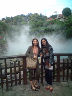 地獄谷は加賀屋から坂を上って散歩すると直ぐに着きました。熱いお湯が池の中にどんどん湧き出ていて、湯気が凄かったですよ~。川下では少しぬるめの足湯をエンジョイしている親子連れが沢山いました。本当の加賀屋は石川県なので、富山県民だった頃には何度も行きましたが台湾では初めてでした。