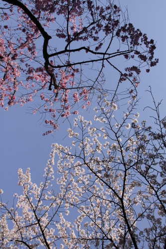 以前修学旅行&台湾人の友人Ya-lingと来た場所です。この日は雨でしたが、けぶる山と桜が神秘的でそれも良しまた、清水の舞台から見る色とりどりの雨傘も綺麗だと思いました。