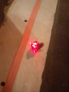 台北在住、友人のYa-lingが鰻、烏賊とセロリ炒め、魚のスープ、揚げた魚に野菜あんかけが乗ったもの、老酒などを台湾料理屋で奢ってくれて、酔っ払ってCafeに向かう途中に何か光るものを見つけました。地面に落ちたままなのに、どんなバッテリーで動いているのか、カフェで随分長い時間過ごして出てきてもまだ灯りがついていました。車に付いていたのが壊れて落ちたのか、それともわざと置いてあるのでしょうか?誰も持っていかない所がナイス!