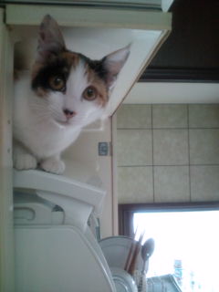 猫のご飯を買いに行く途中、数字が並んだバイクのメーターです。家に帰って猫が居ないと思ったら、こんな所からバツが悪そうに出てきました。三毛猫のジュンちゃんはディッシュウオッシャーや洗濯機が大好きなので気をつけないと一緒に洗ってしまいそうです。