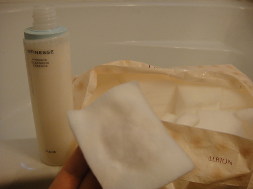 湿度の高い日本に居るときはメイクも落とせる洗顔料を使っていましたが、ラスベガスに来てから同じ物を使うと肌がカサカサになるので保湿力の高いクレンジングエッセンスを使っています。アルビオンのコットンは大きめで柔らかいので、日焼けで痛んだ肌にも優しいですよ。Albion InfinesseHydrate cleansing essence