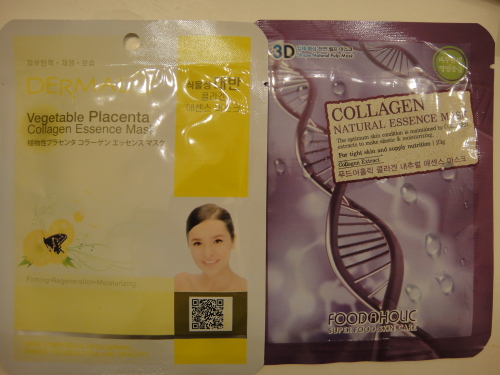 ダーマルの植物性プラセンタコラーゲンマスク(写真の黄色いほう)はFirming, regeneration, moisturizingとパッケージに書いてあります。使い心地は良く、エッセンスはかなりネットリして普通のローションより首から下に流れ落ちにくくなっています。Foodahoic super food skin careFor tight skin and supply nutritionこちらは鼻のところが三角に盛り上がる3Dカット、目の横が浮き上がらないで便利です。ローションはたっぷり入っていますがサラサラしているので流れ落ちやすいです。椅子に座るより、ソファーに寝て使うと良いと思います。