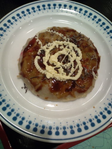 夏に帰った時、発祥の地高岡市で食べた魚介入りのヤツより富山市婦中町で食べたトビウオ入りの方が見た目は悪いけど、美味しかったすり身入りお好み焼きって感じです。
