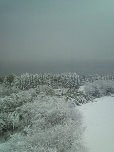 この写真は部屋からですが、露天風呂からも雪の合間に海、新港大橋、島尾海岸や氷見の橋が見渡せました。雪の中、温泉に浸かるってサイコー!