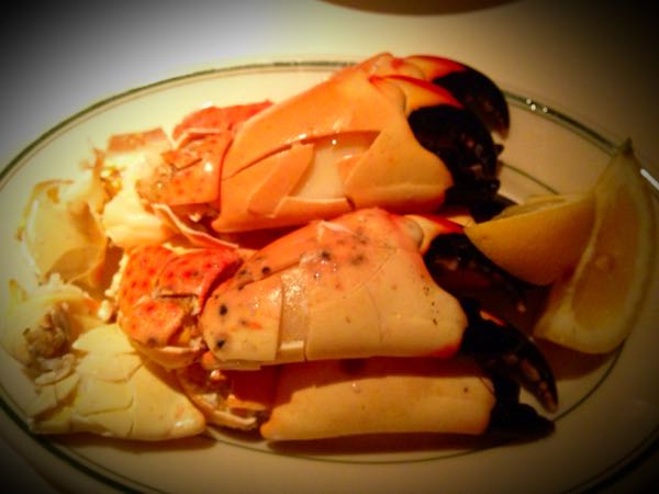 アメリカのストーンクラブ、殻はとても硬いので、レストランが割ってくれます。 ラスベガスで食べている冷凍のアラスカ&カナダ産キングクラブより小さいですが肉はジューシーです(*^o^*)